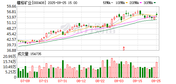 藏格矿业9月25日大宗交易平台出现一笔成交,成交量12.29万股,成交金额678.16万元,大宗交易成交价为55.18元,相对今日收盘价溢价0.07%。该笔交易的买方营业部为财通证券股份有限公司杭州文二西路证券营业部,卖方营业部为中国银河证券股份有限公司杭州东宁路证券营业部。