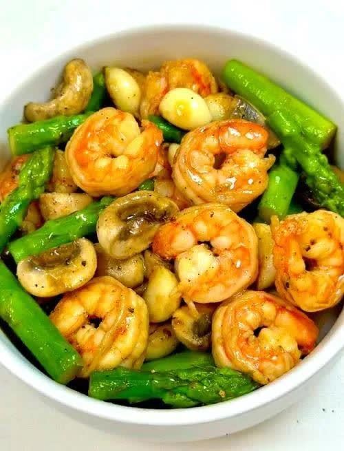 芦笋口蘑炒虾仁